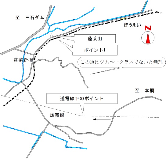 うまくすると、送電線の下が草刈りされているかも知れません。作業道になっているのです。