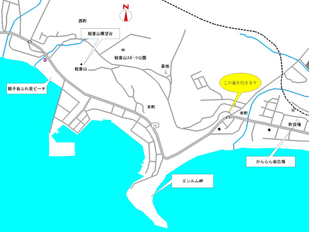 栄町の信号の交差点、なんだかよくわからない交差点になっていますが、とりあえず、山に向かって登っていきそうな左へ上っていく道を行きます。