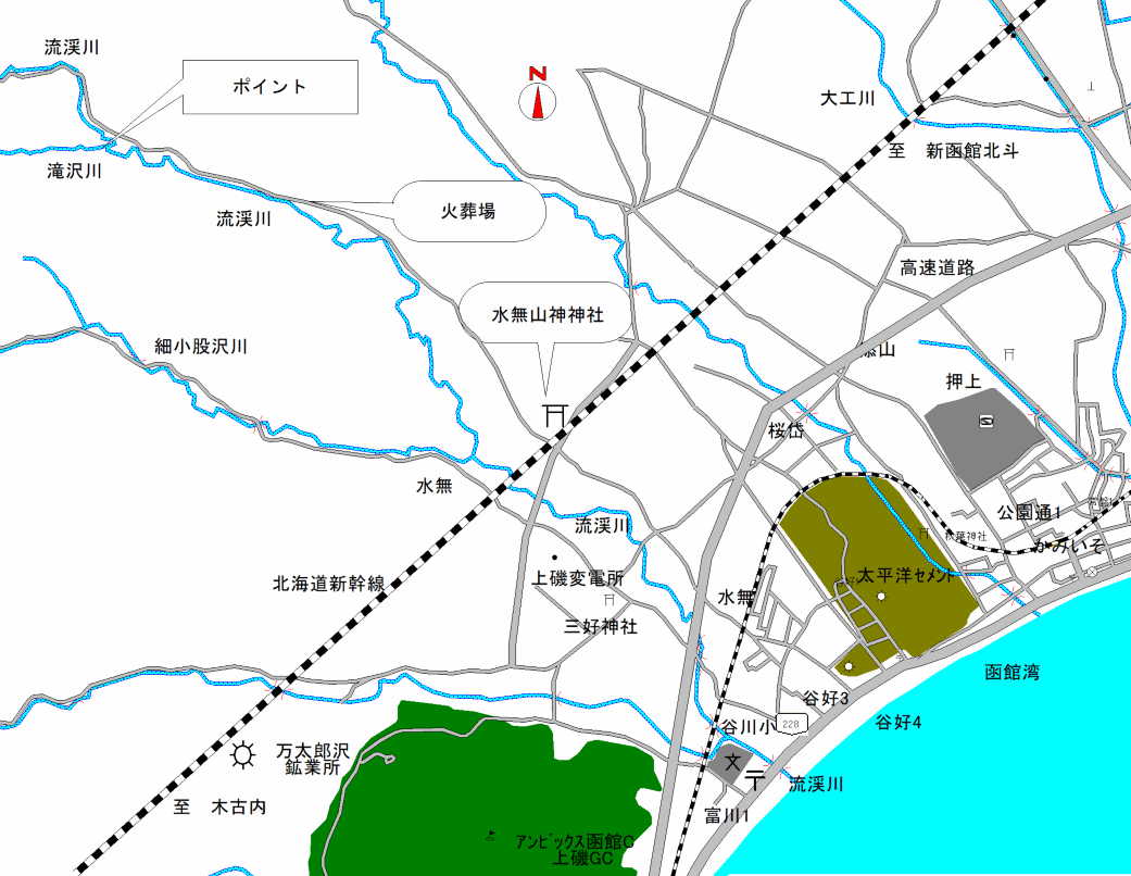途中火葬場を過ぎると、道が狭くなりますので、注意してください。