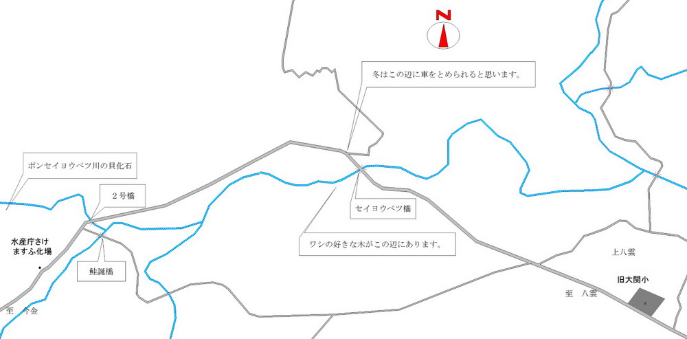 上八雲の集落を過ぎ、下り坂になったところがセイヨウベツ橋。